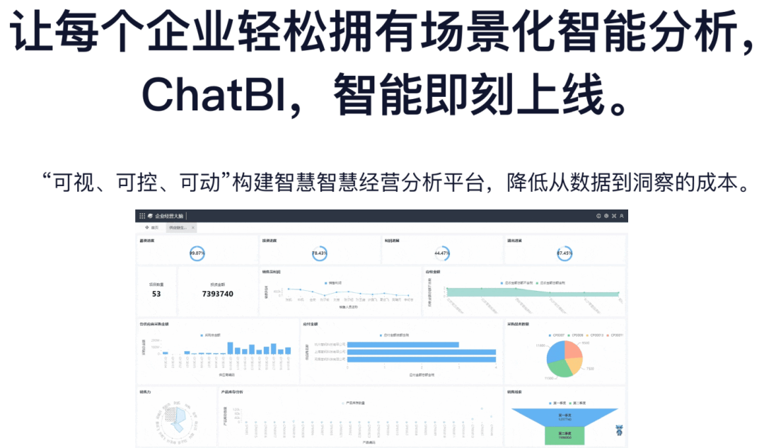 我们提出了“可解释性”的概念,确保大模型生成的结果具有高度的可信度和可控性。我们有统一的解释层,下边是低代码引擎,数据编制和分析引擎,内容生成引擎,然后我们通过微调的大模型来生成,举例来讲,对于CHATBI的场景,我们准确性能达到90%以上,出现查不到数据的情况很少,通常的厂家准确度在70%左右。我们通过大模型直接可以生成APP,而不是生成原生代码去编译运行,能极大的提高开发的效率;内容生成这块,也是可以真正的生成复杂的报告,而不是泛泛的一些不可靠的段落。